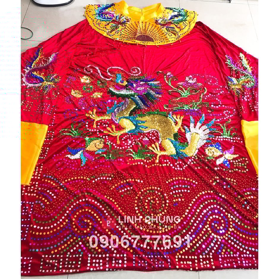 Áo Bà Châu Đốc An Giang - Áo mặc rồng chìm kết hạt kim sa (Đỏ, Vàng) - Mã: MCCDKS