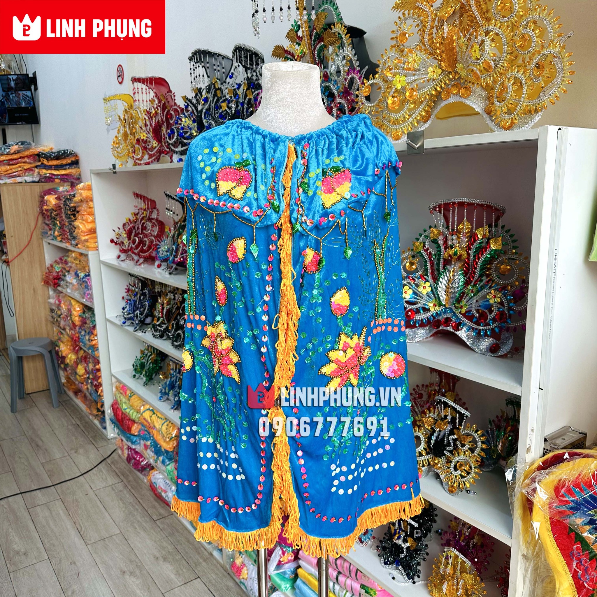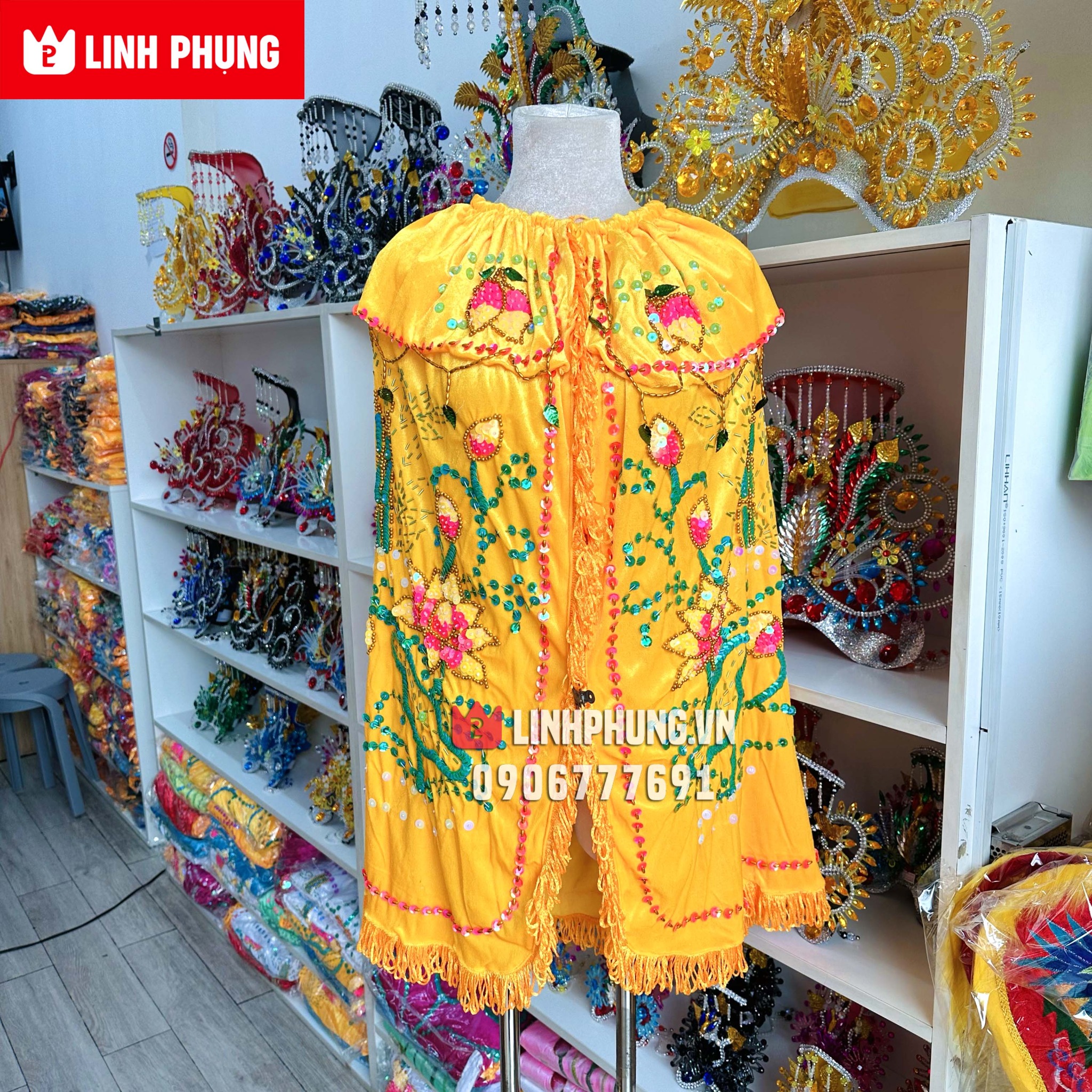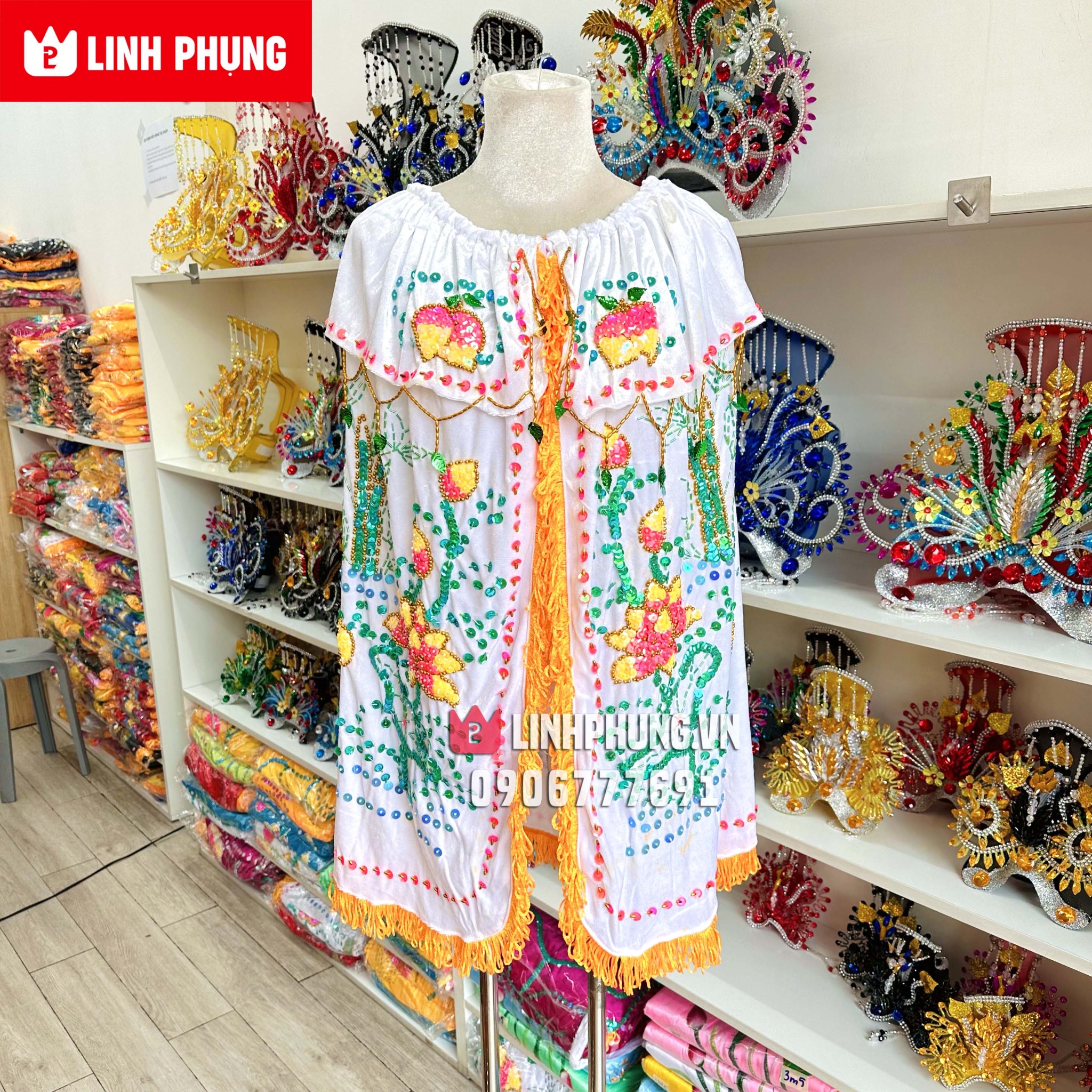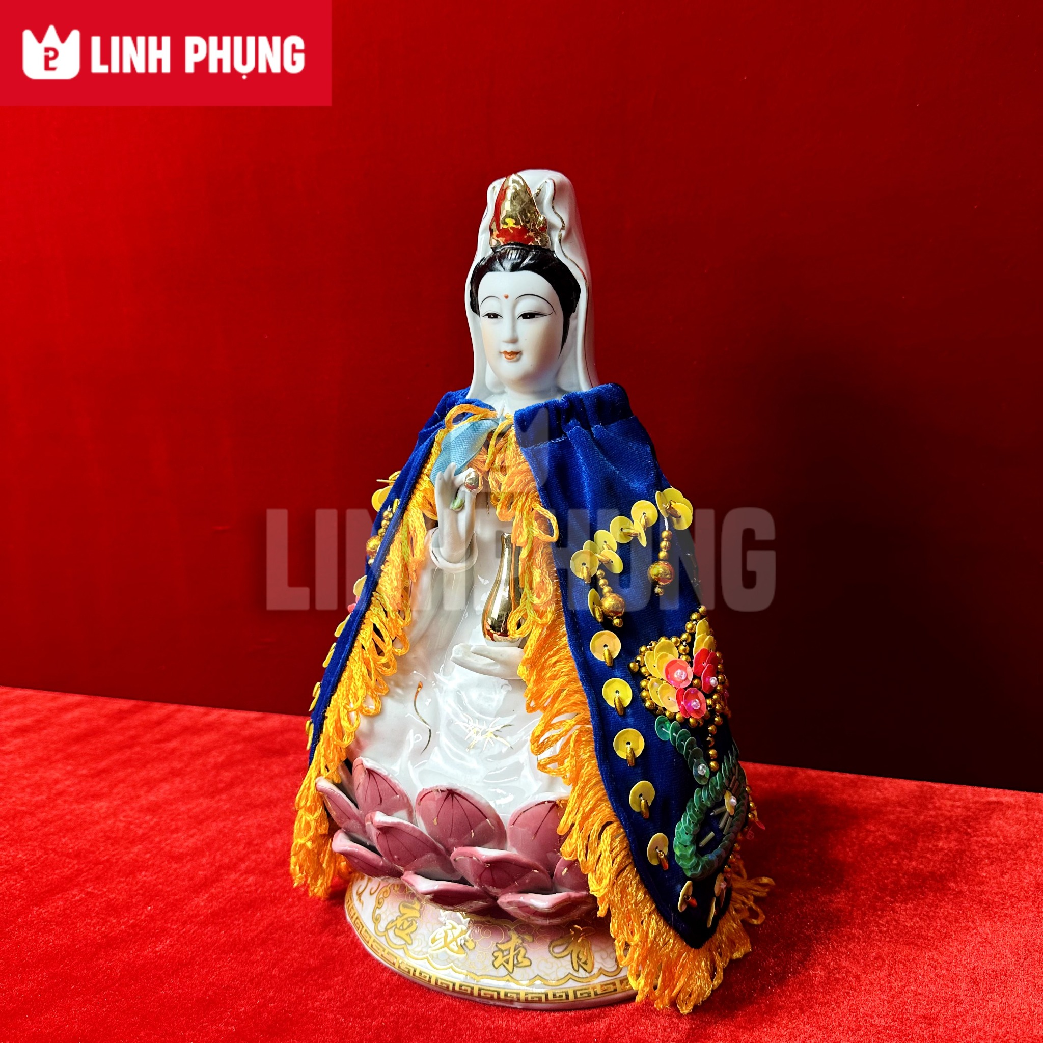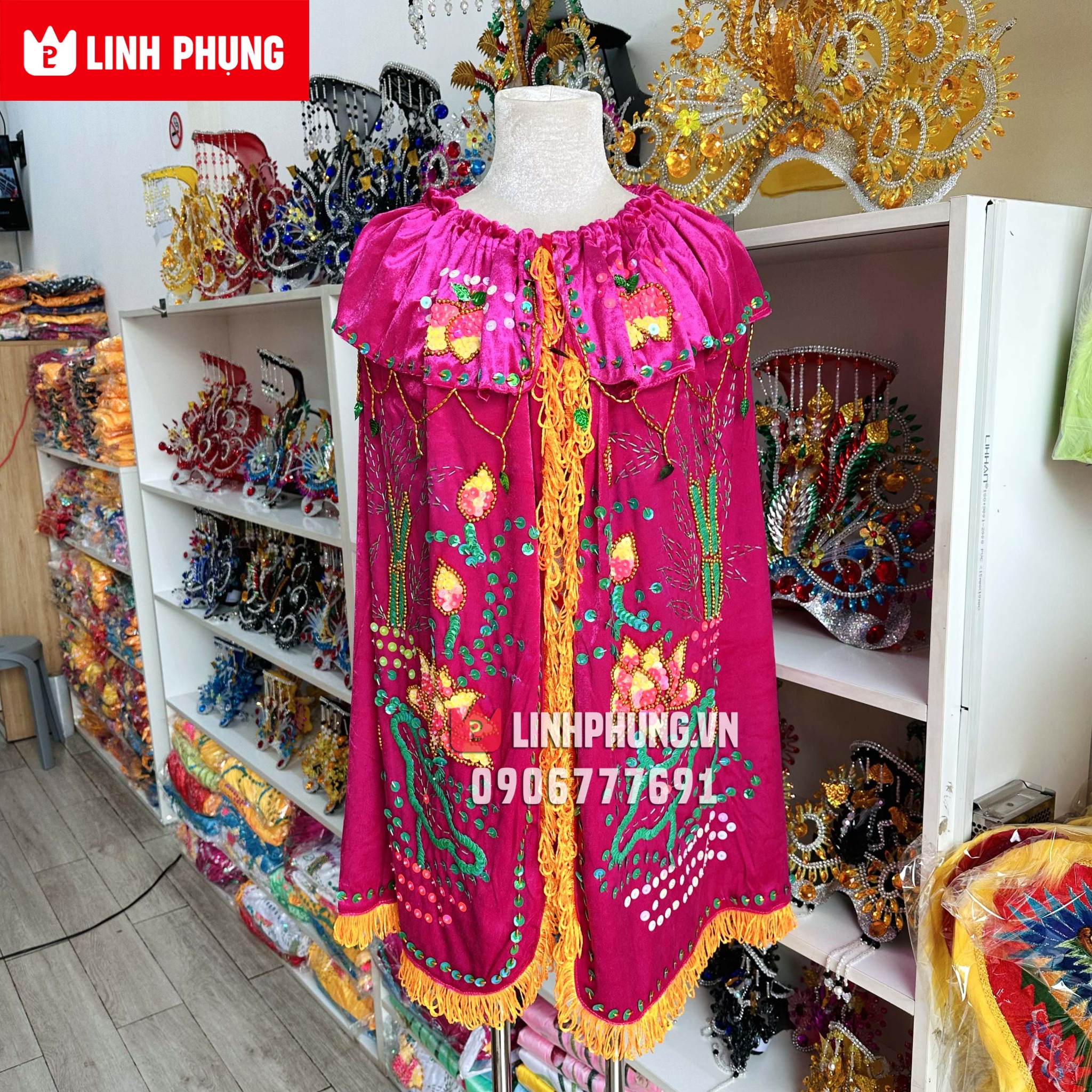 Sản phẩm thủ côngÁo choàng Quan Âm - vải nhung kết sen trúc (dài 20cm - 80cm)