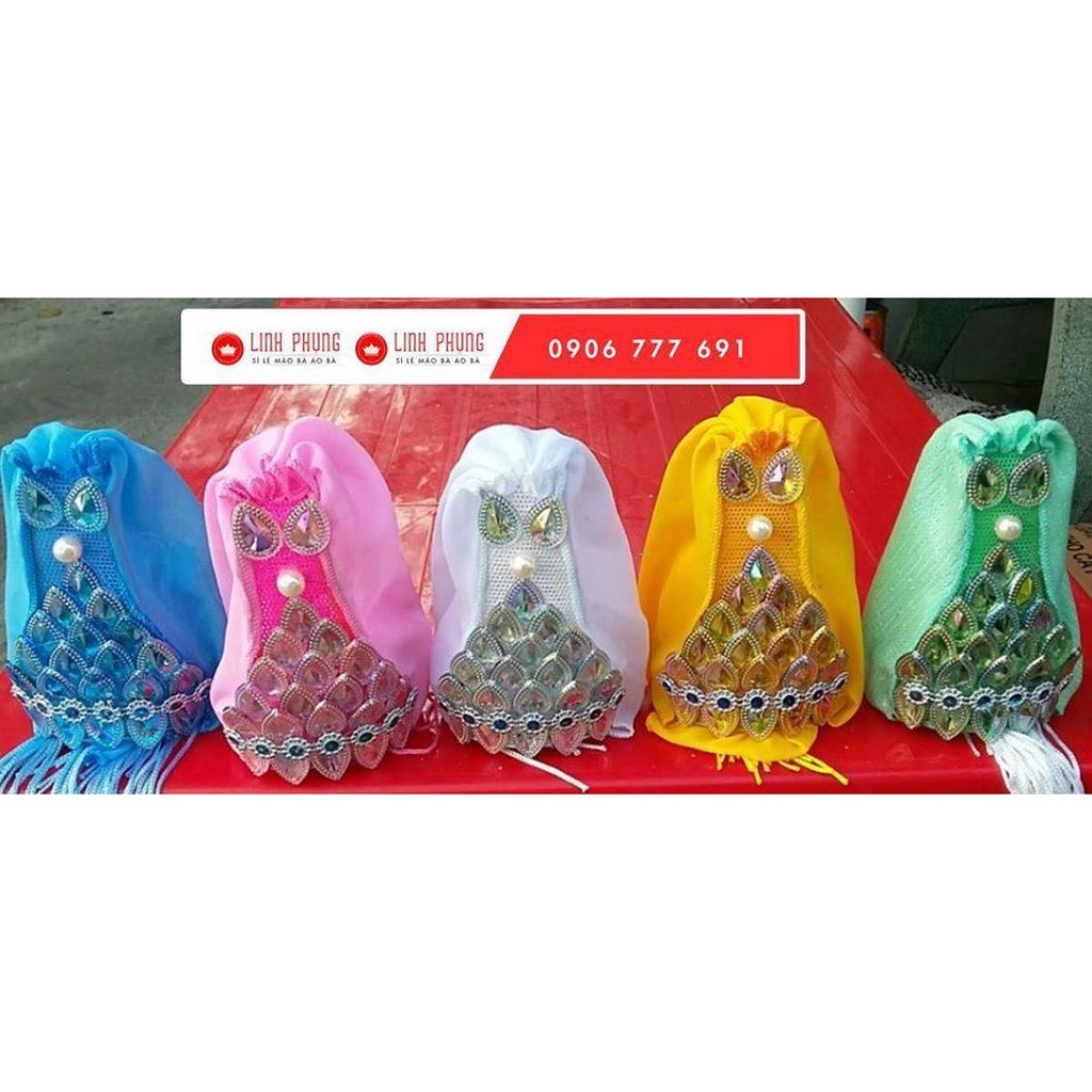 Bộ sản phẩm gồm: - 1 áo choàng kim sa 9 ly dài 40cm - 1 mão cho tượng bà Quan Âm vòng mão 20 - 22cm