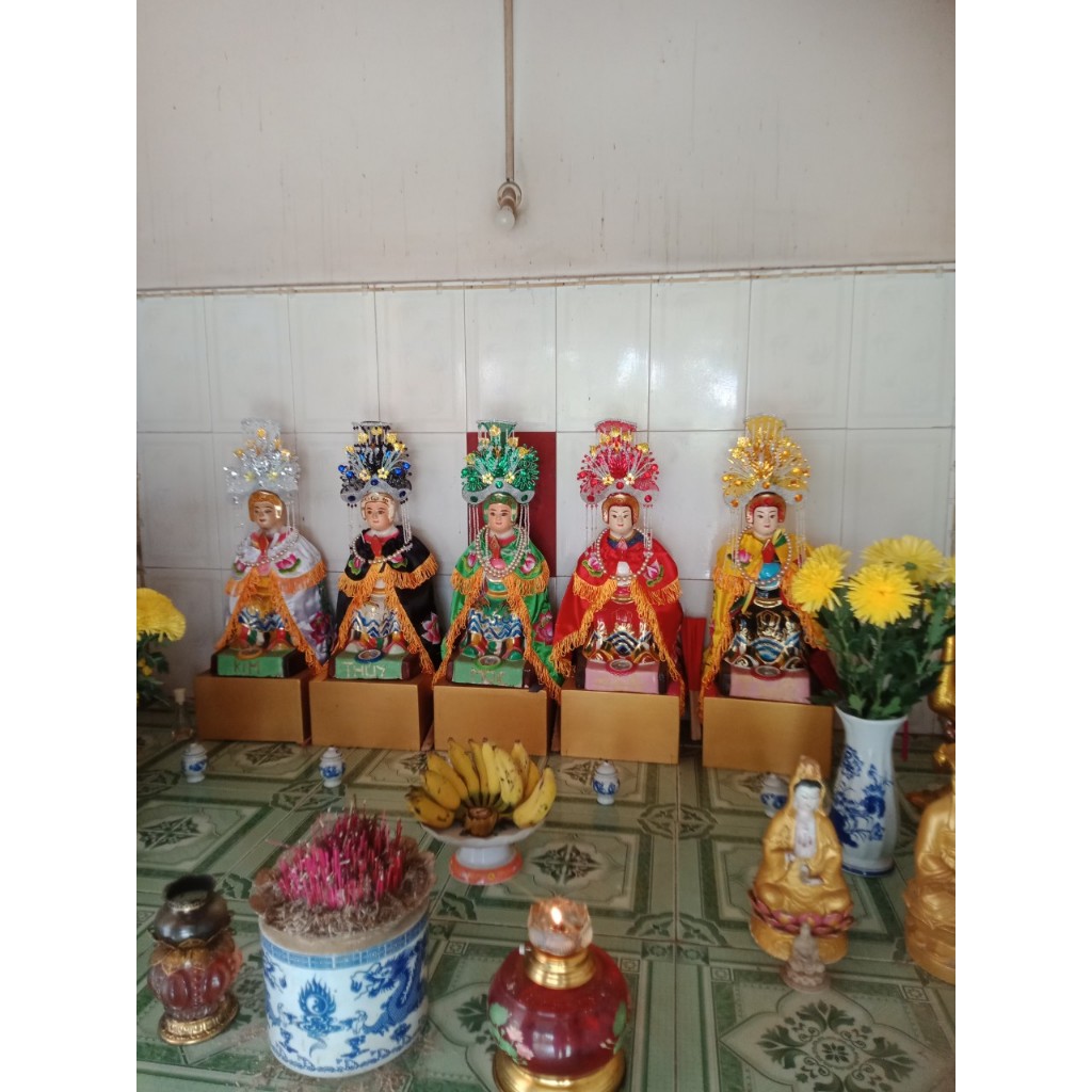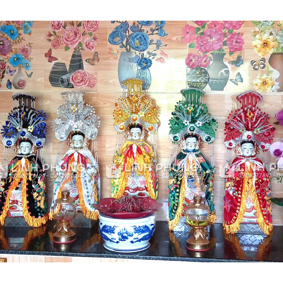 Bộ 5 mão cho 5 bà Ngũ Hành Nương NươngCốt tượng cao 40cmVòng đầu mão 22cm Chất liệu lưới, hột đáSản phẩm thủ công có thể khác biệt về màu sắc do ánh sáng chụp ảnh và quá trình sản xuất. Chi tiết m...