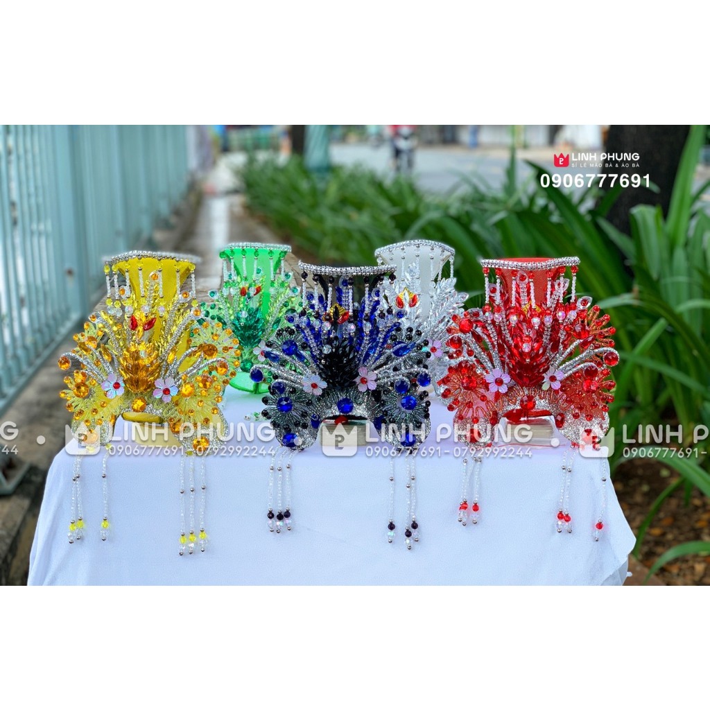 Bộ 5 mão cho 5 bà Ngũ Hành Nương Nương Cốt tượng cao 40cm Vòng đầu mão 22cm Chất liệu lưới, hột đá