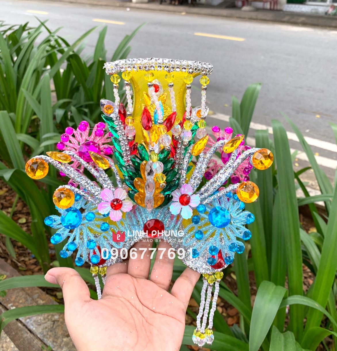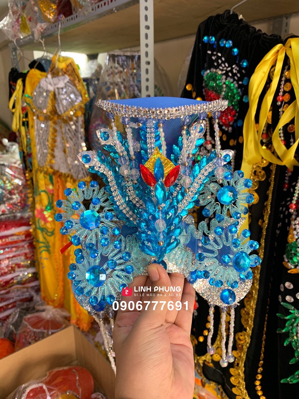 CHẤT LIỆU: áo nhung, mão lưới đính hột