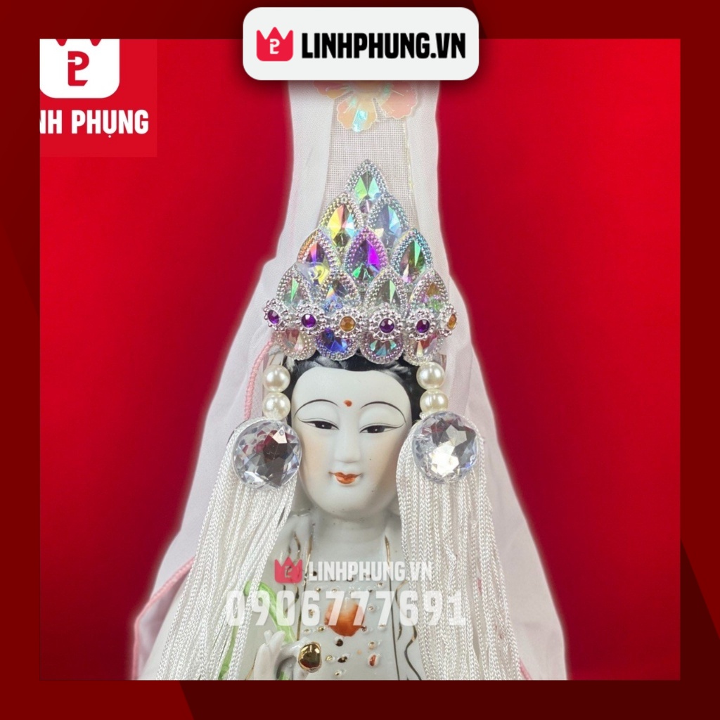 Kích thước vòng đầu tượng: 18cm Màu sắc: Xanh Biển/Vàng/Trắng/Xanh Ngọc/Hồng/Đỏ Chất liệu: Lưới Hột đá: Cừ