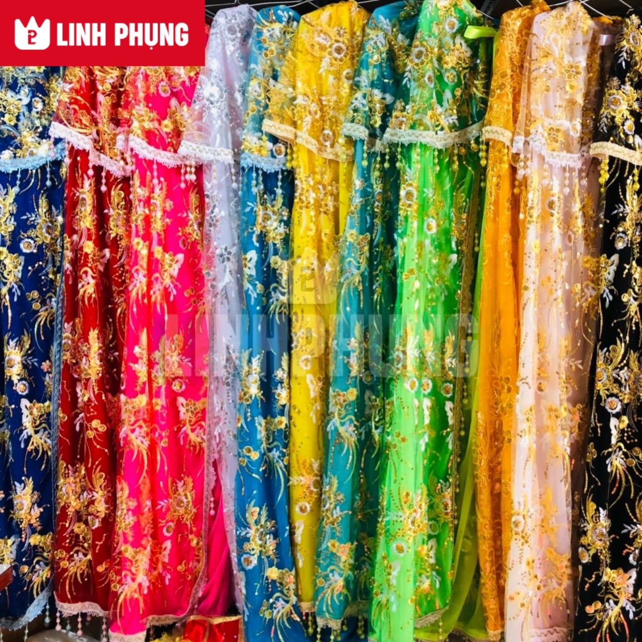 Chất liệu: vải voan kim sa + 1 lớp lót voan nhũ kim tuyến